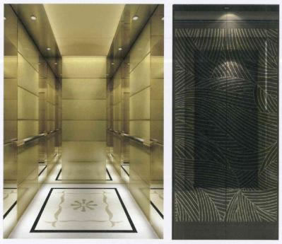 轎門:鈦金鏡面蝕刻       層門:香檳金鏡面蝕刻